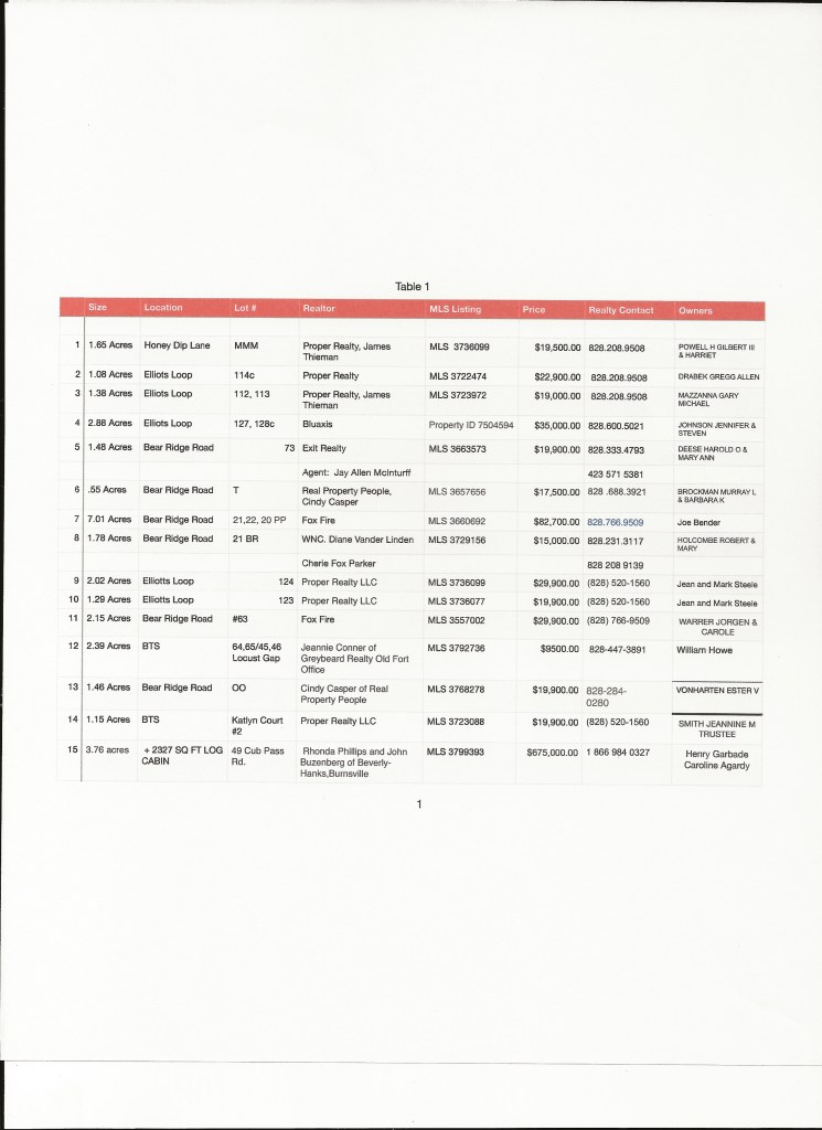 Lot 21, 1.78 acres, $15,000 Rock Springs Road, Bear Ridge Properties in Mitchell County, Plat Book/Slide: 2/189 & 191, owner Holcombe, WNC Mountain Realty Group, Listing agent Diane Vander Linden at 828-231-3117